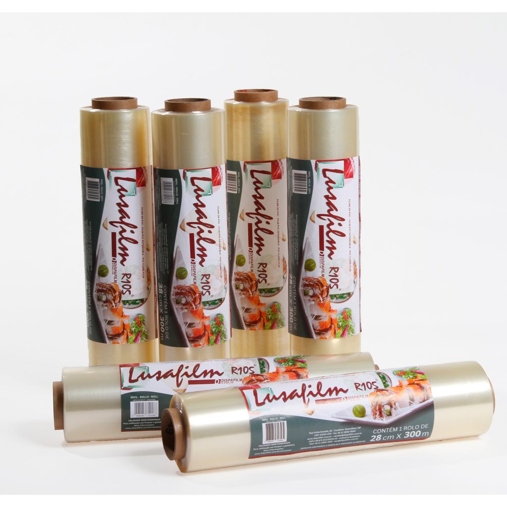 O Filme PVC Transparente com serrilha Lusafilm é a solução ideal para embalar alimentos com praticidade e segurança. Com dimensões de 28cm de largura por 300 metros de comprimento, embalado em uma caixa com sistema de corte fácil, torna-se ideal para embalagem de alimentos.